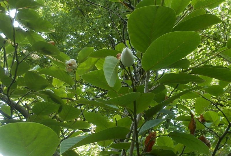 オオバオオヤマレンゲ。葉は大きな倒卵形。(2017/6/3)