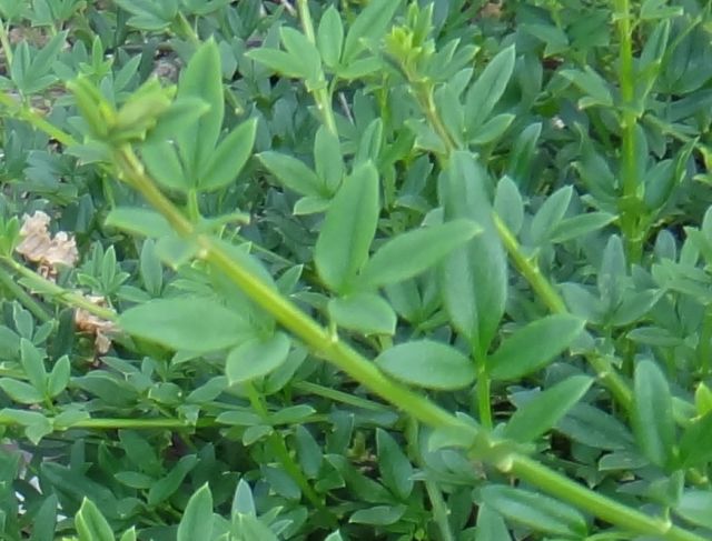 葉は3出複葉で、小葉は尖った楕円形(2〜4センチ)で全縁。