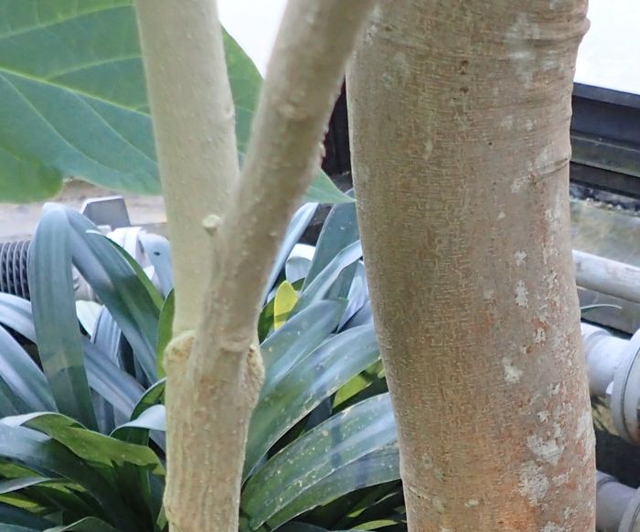 果実は丸い核果で、表皮は赤く、鱗状のブツブツがある。