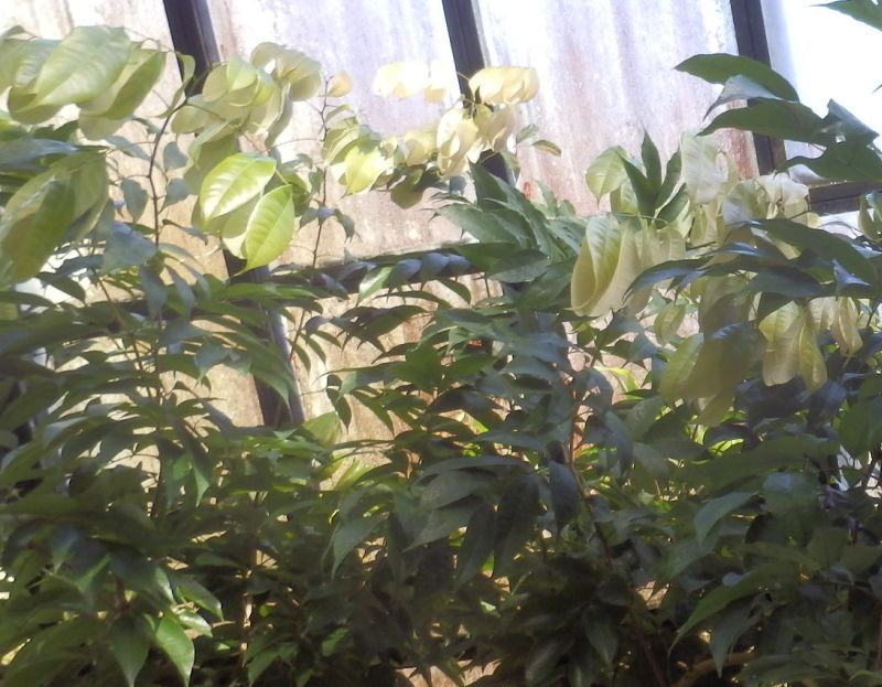 偶数羽状複葉が互生し、小葉は長さ5〜15センチの楕円状で、