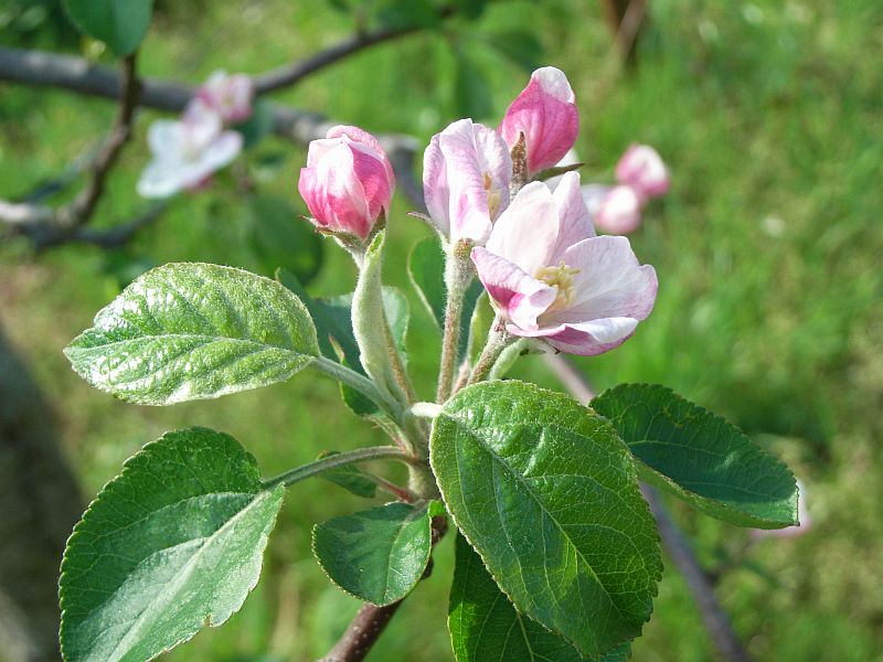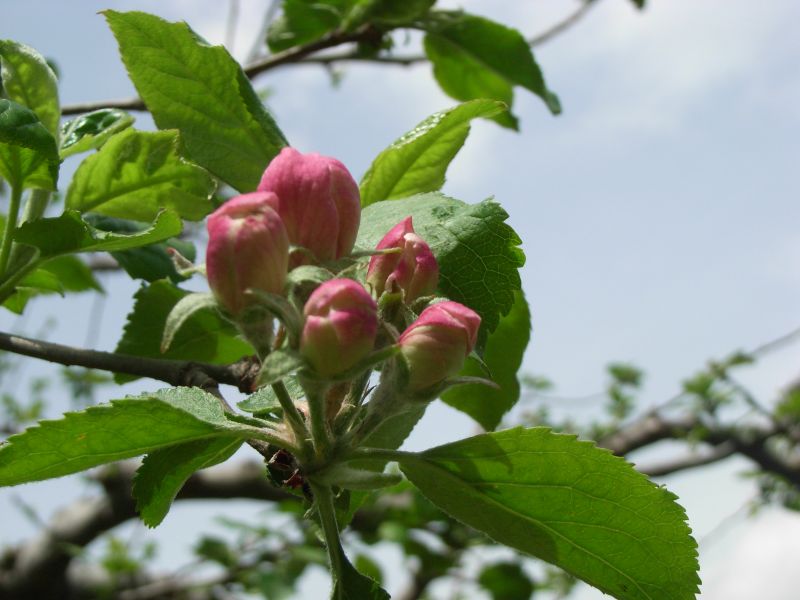 花は短枝の先に散形状につく。蕾は赤いことが多い。