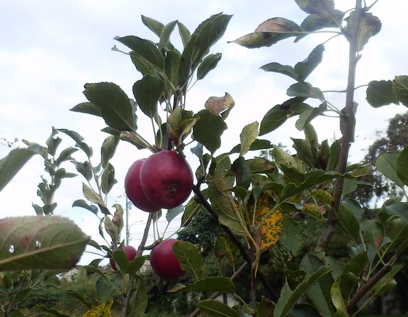 果実は直径4〜12センチの球形の梨状果で、秋に赤く熟す。