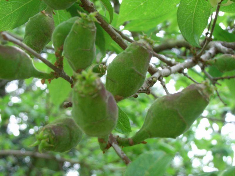 中に長楕円形で褐色のそう果が1〜4個ある。
