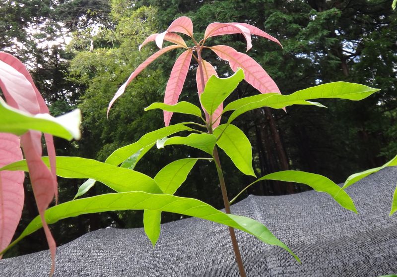 葉は枝先に集まって互生する。若葉の赤い時期がある。