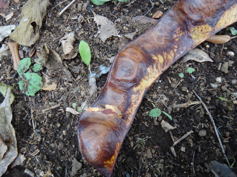 長さ20〜30センチのねじ曲がった灰色の豆果をつけ、