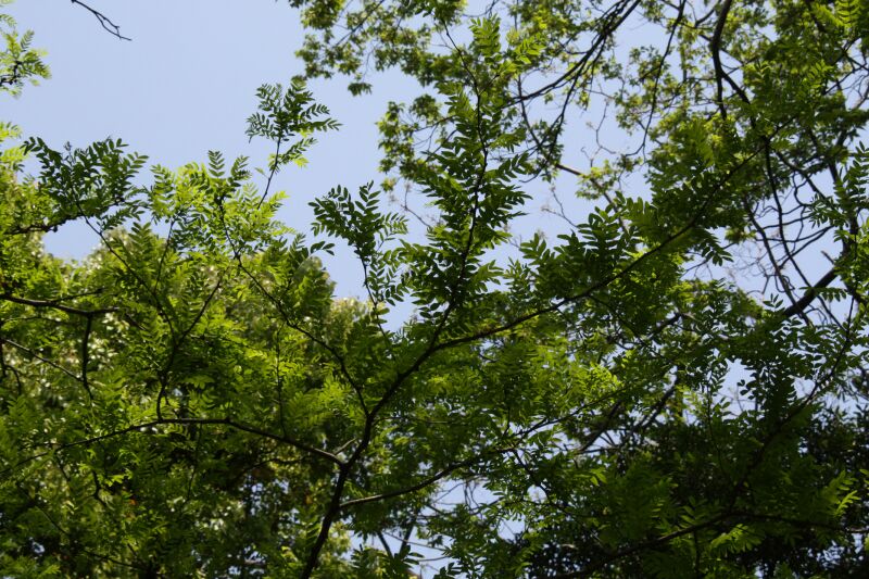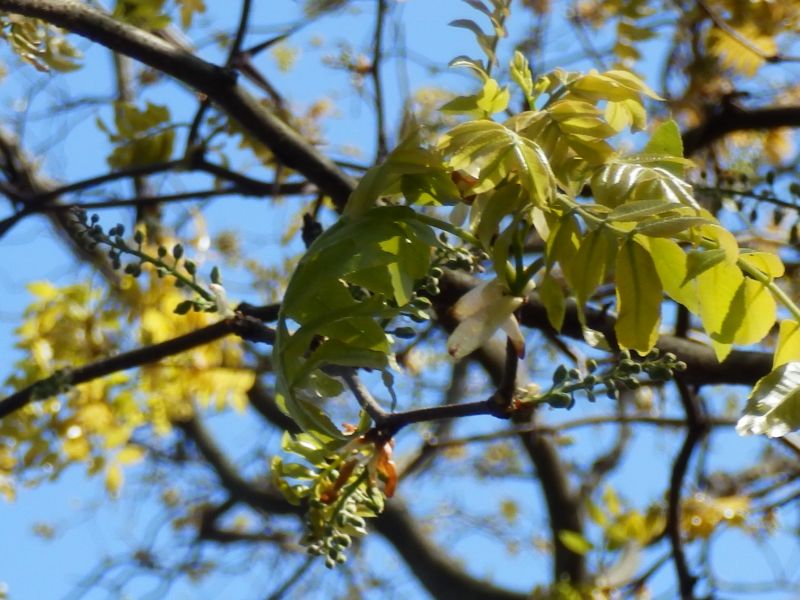 偶数羽状複葉が短枝に数本つく。(2015/5/10)