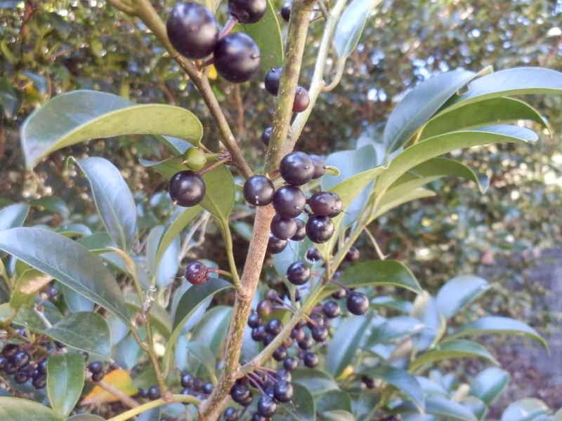 果実は直径7〜8ミリの球形の液果で、11月〜12月に黒紫色に熟す。