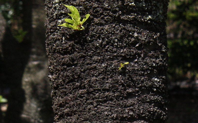 樹皮は紫褐色で、ザラザラしている。