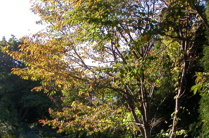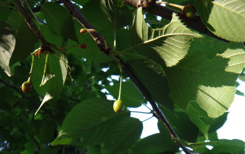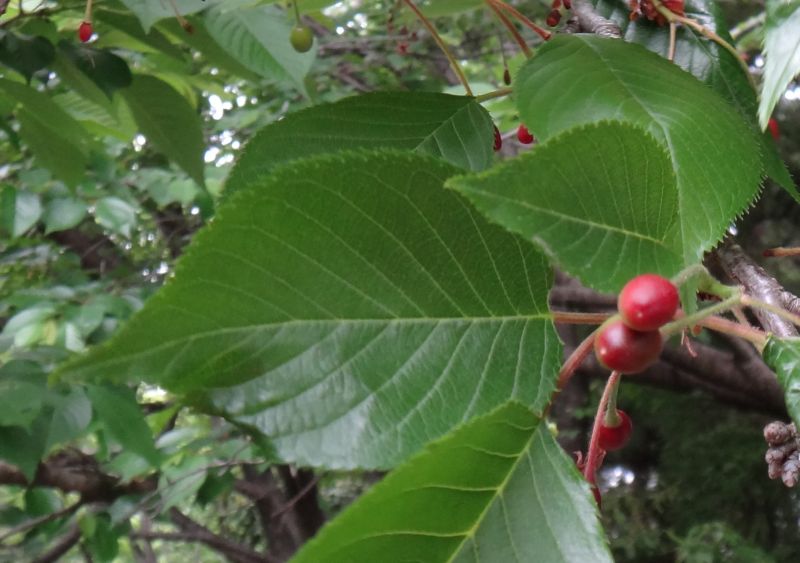 核果は卵形。葉に鋸歯がある。(2016/5/7)