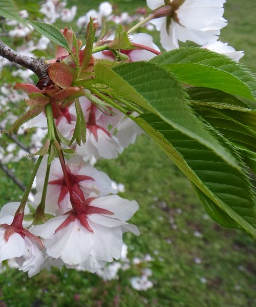 八重のオオシマザクラ。萼が赤い。