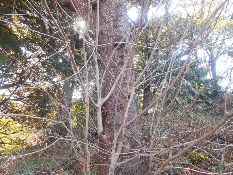 幹。古い樹皮は暗紫褐色。