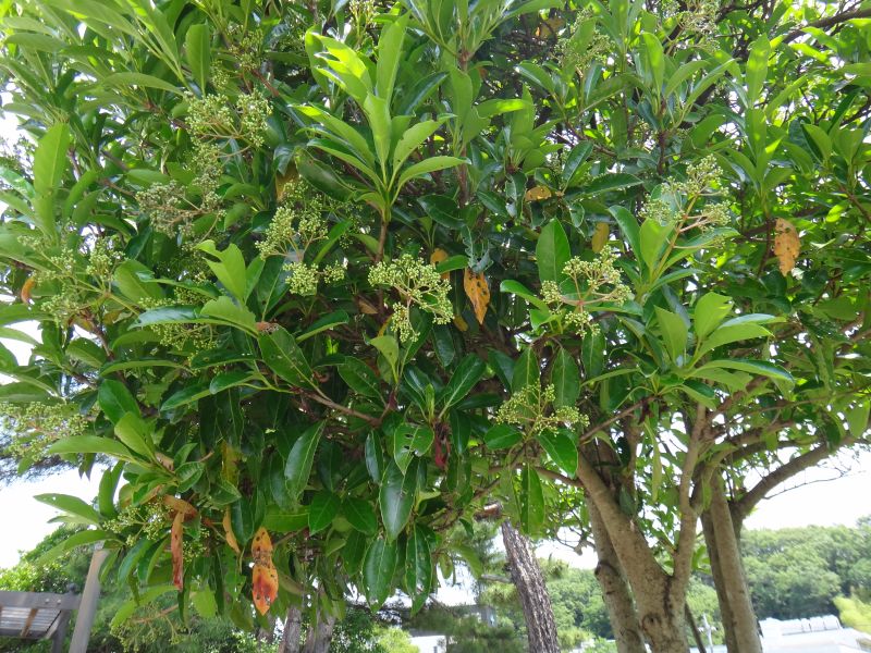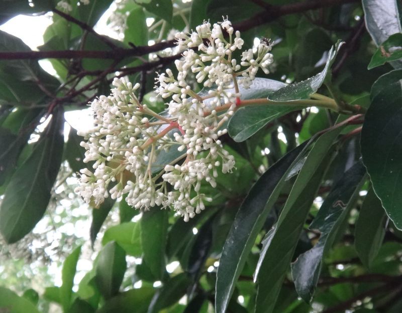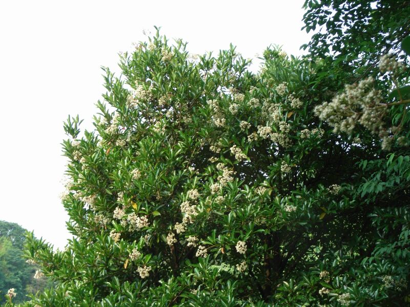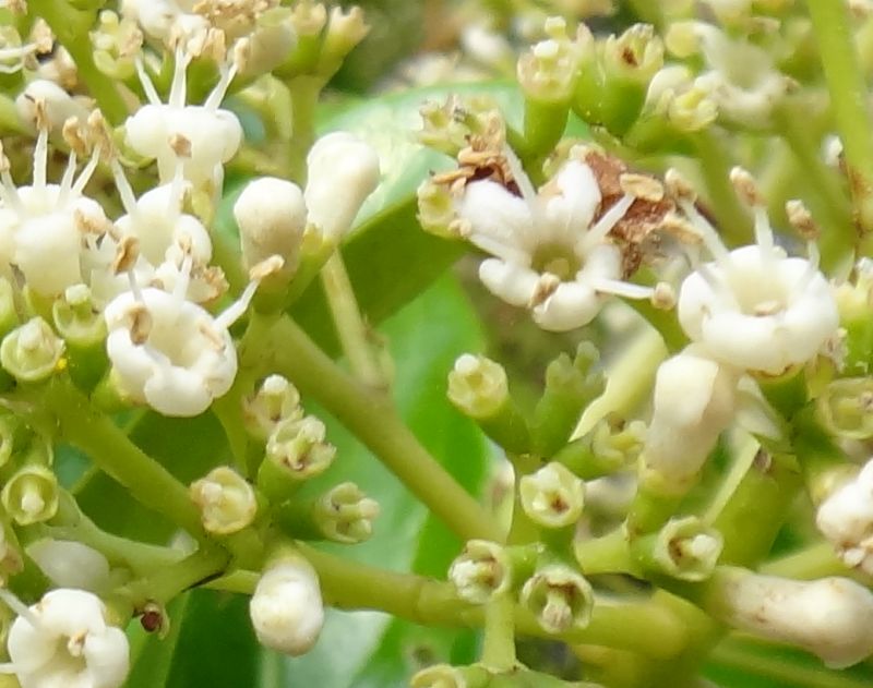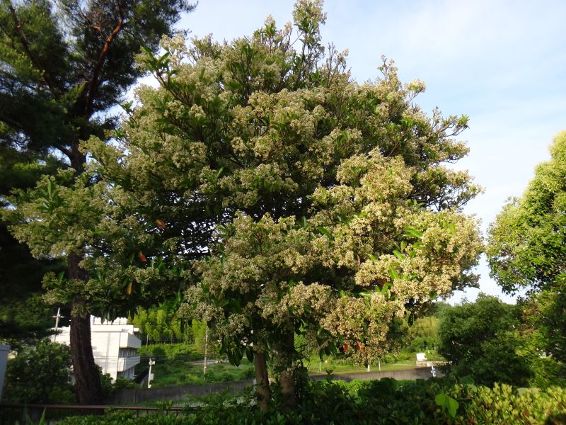 枝先に長さ5〜16センチの大きい円錐花序を出して、白い花を多数付ける。
