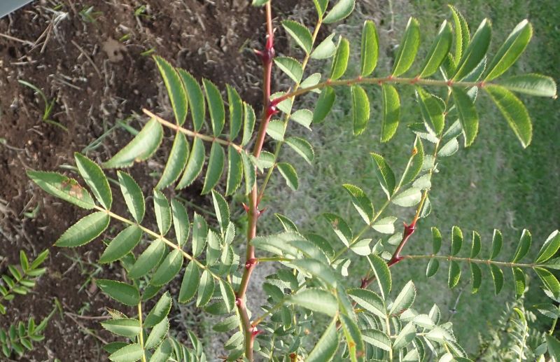 葉は奇数羽状複葉で、葉腋に棘が対生する。