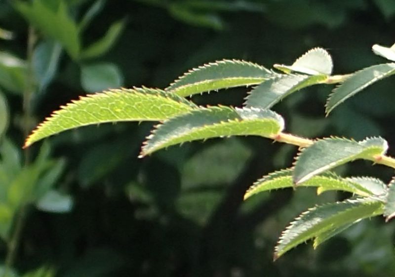 小葉は尖った楕円形で、鋭い鋸歯がある。