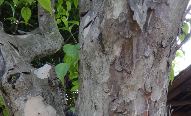 幹は茶褐色で、皮が薄くむけてはがれる。