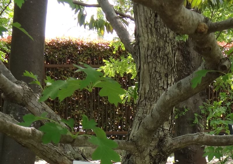 幹は灰褐色でひび割れがある。(2015/5/6)