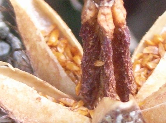 黄褐色の小さい種子が多数現れる。