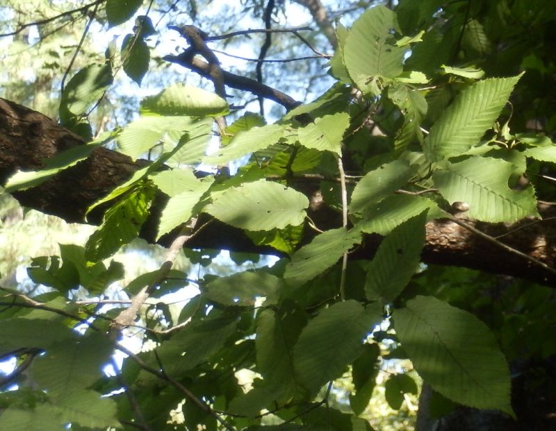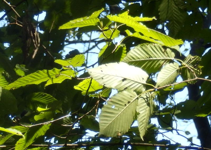 サワシデ:葉は先の尖った広卵形、葉基部心形、雄花黄緑色、果穂閉じる。