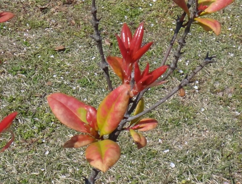 寒くなると葉が赤みを帯びる(11月)。
