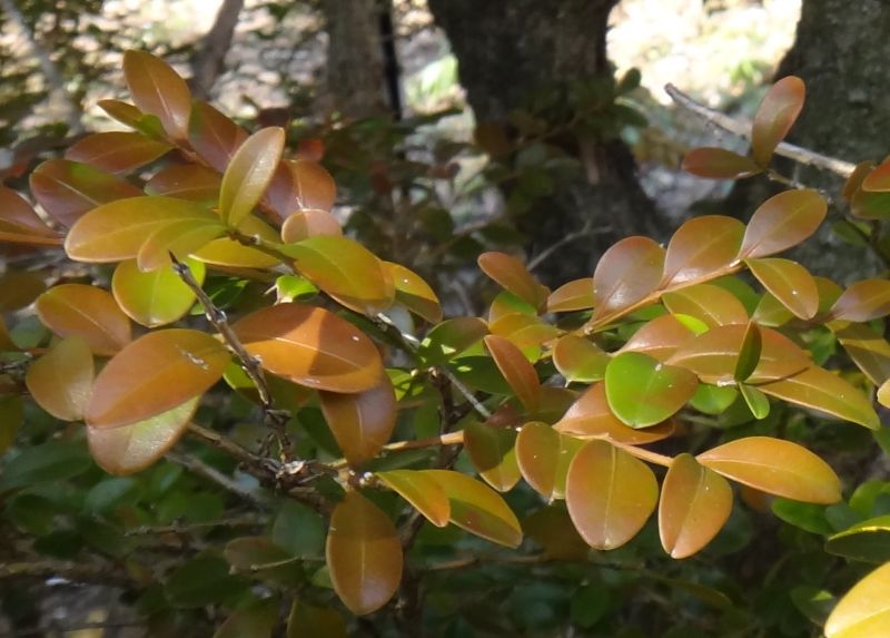 寒さが強いと赤銅色に色づくことがあるが、落葉はしない。
