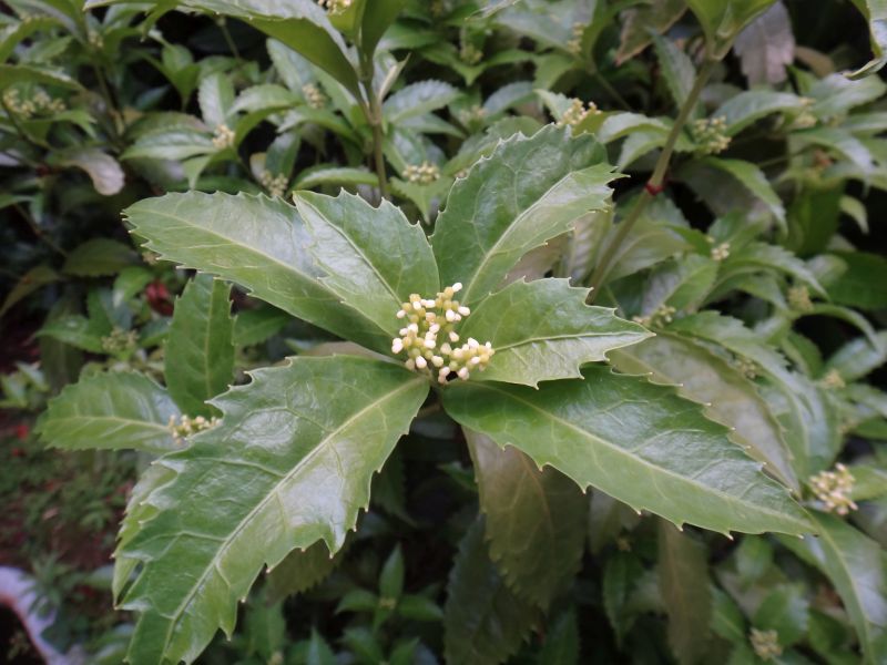 葉は長さ10〜15センチの長楕円形で先がとがり、表面は平滑でつやがあり、