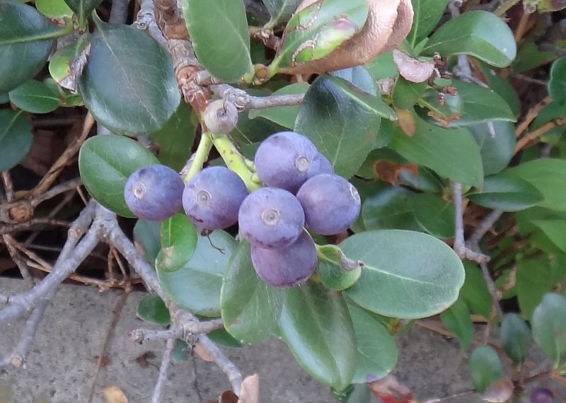 果実は直径約1センチの丸い梨状果で、白い粉がふいていて、