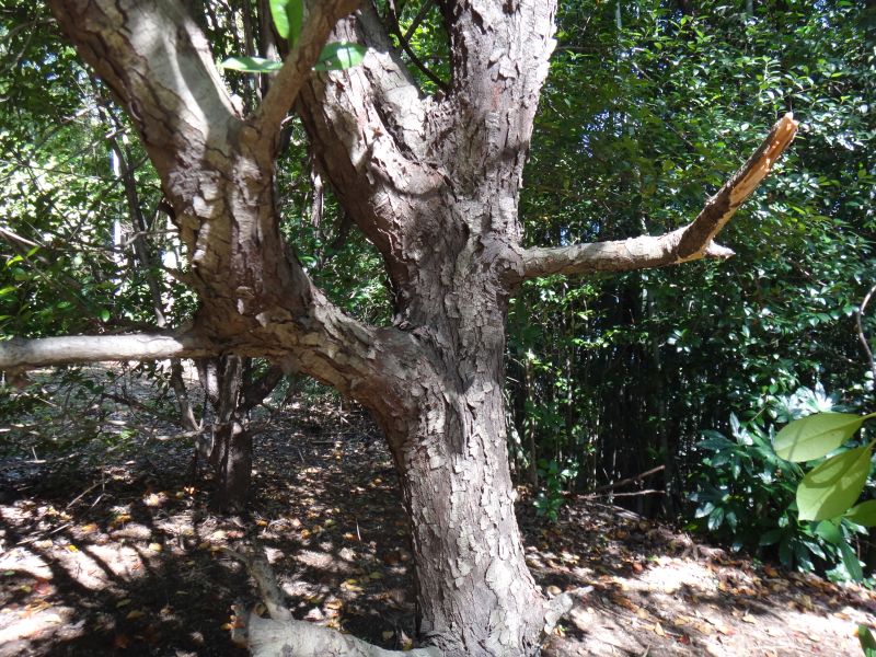 樹皮は灰褐色。この個体はマルバシャリンバイとされている。(2016/10/15)