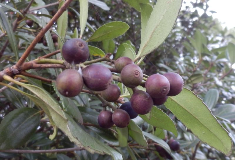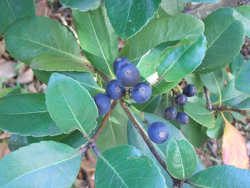 果実は梨状果で、熟すと黒紫色になり、粉をふく。