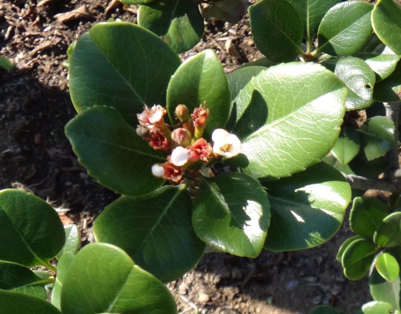 マルバシャリンバイ。この個体は鋸歯はないが、葉先は必ずしも丸くない。(2016/10/15)