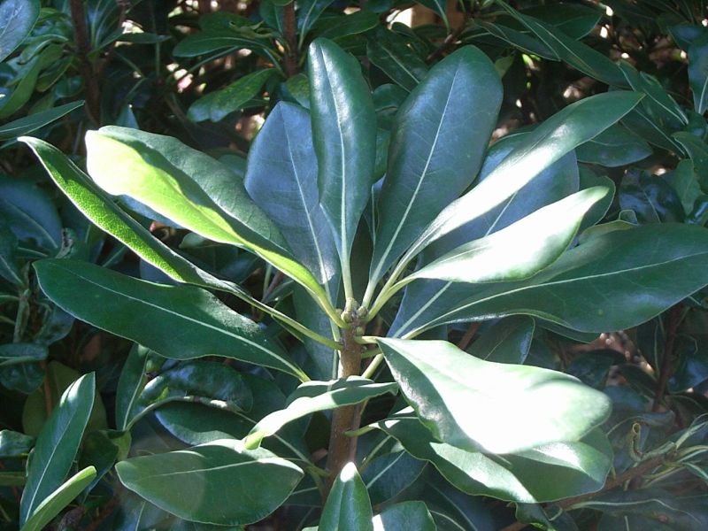 葉は枝先に密に互生し、長さ4〜8センチの長楕円形〜倒卵形であり、