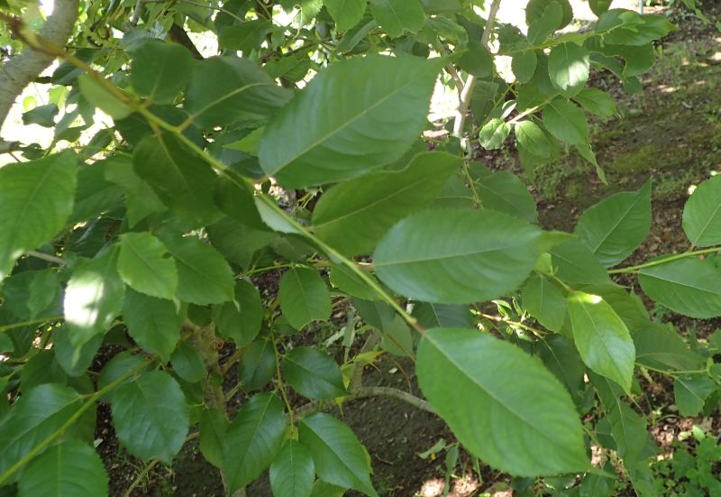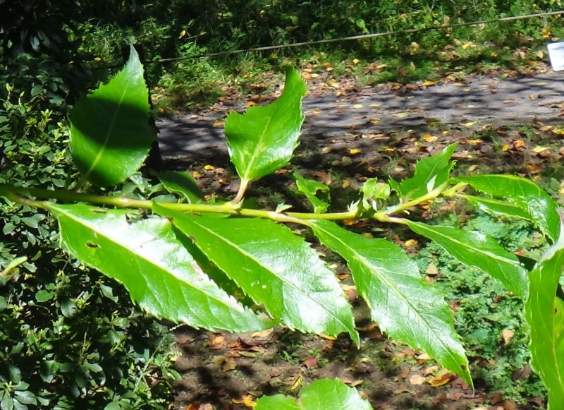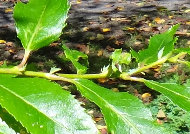 葉に光沢があり、鋸歯がある。