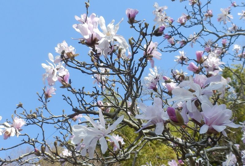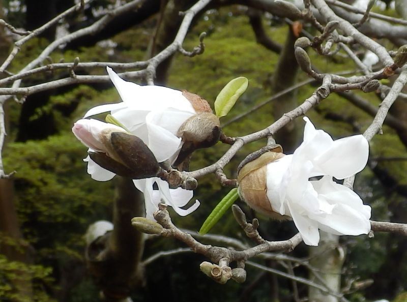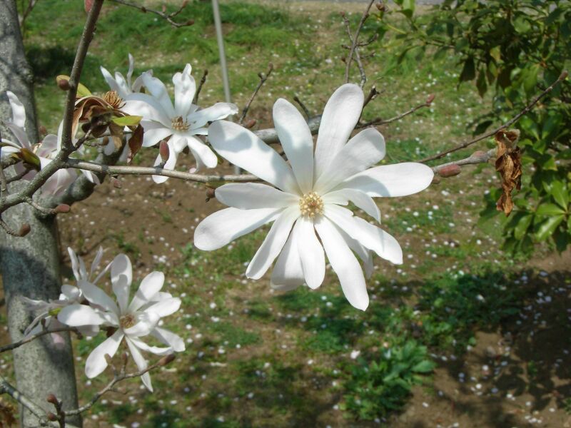 葉の展開前に枝先に直径7〜10センチの芳香のある花を1個開く。