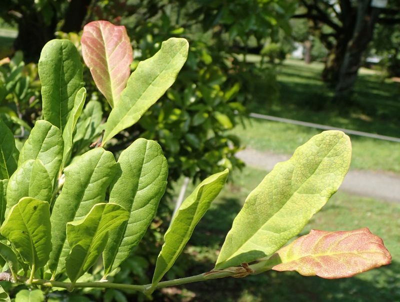 葉は互生し、長さ5〜8センチの長楕円形または倒披針形であり、