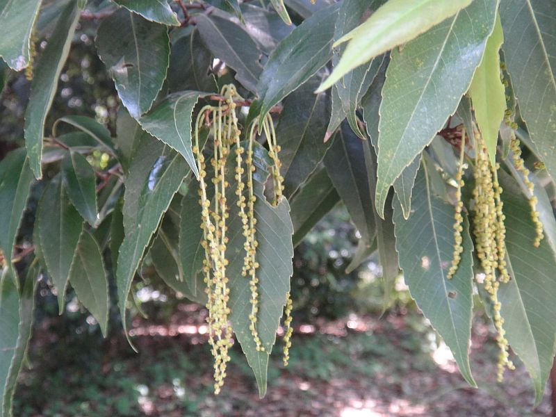黄緑色の長い雄花序が垂れ下がる。