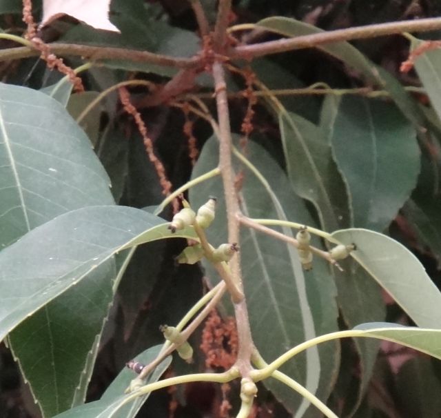 新枝の下部から雄花序が数本垂れ下がる。