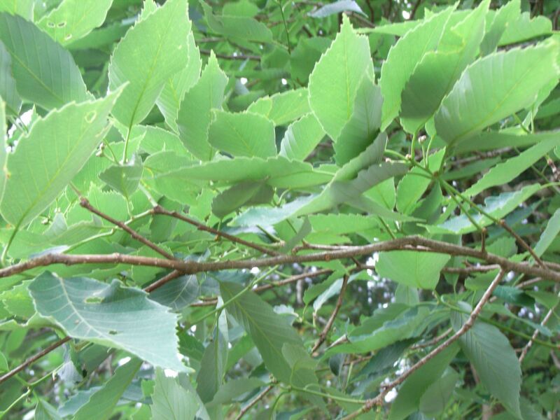 葉は狭長楕円形で浅い鋸歯があって先が鋭く尖り、卵形の堅果ができる。(2012/10/4)