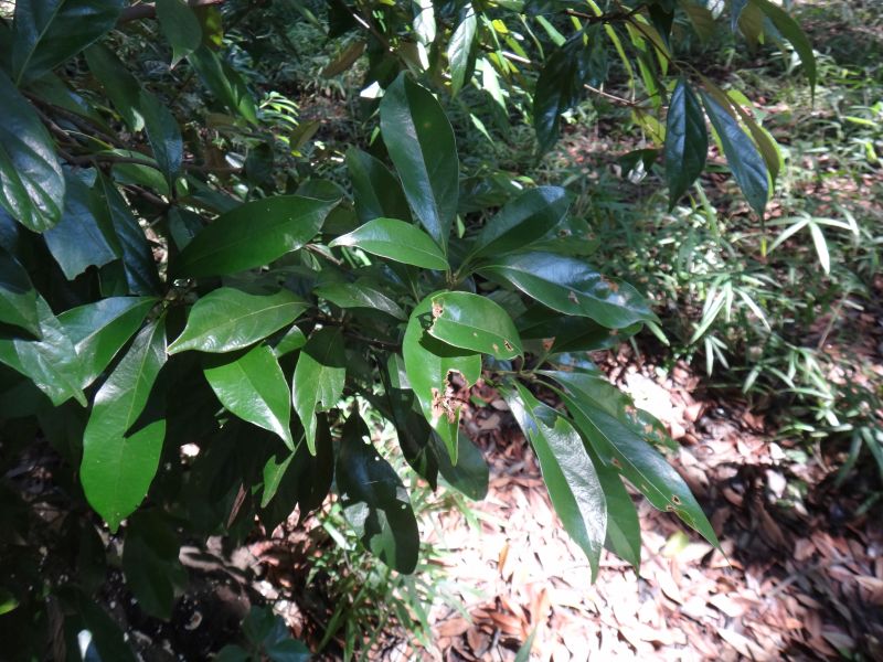 葉は倒卵状楕円形で、厚くて光沢がある。