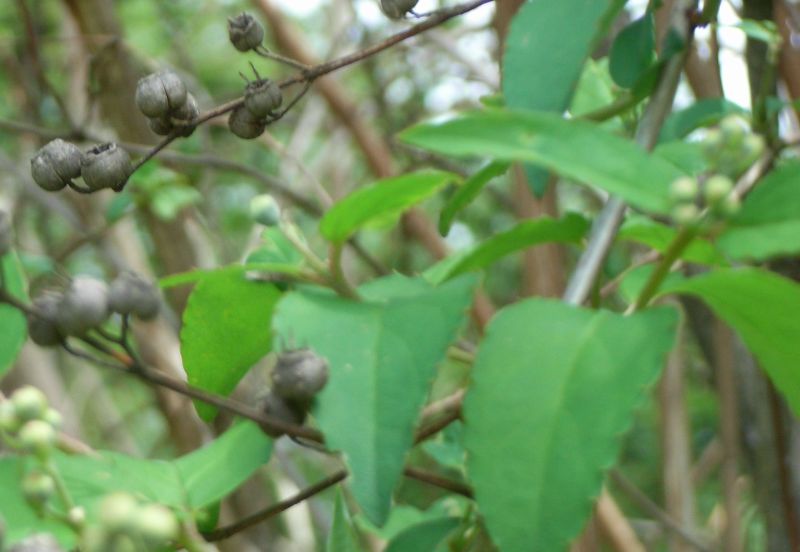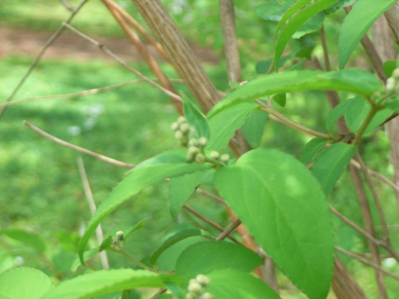 樹皮は若枝では淡褐色であるが、古枝では灰褐色。