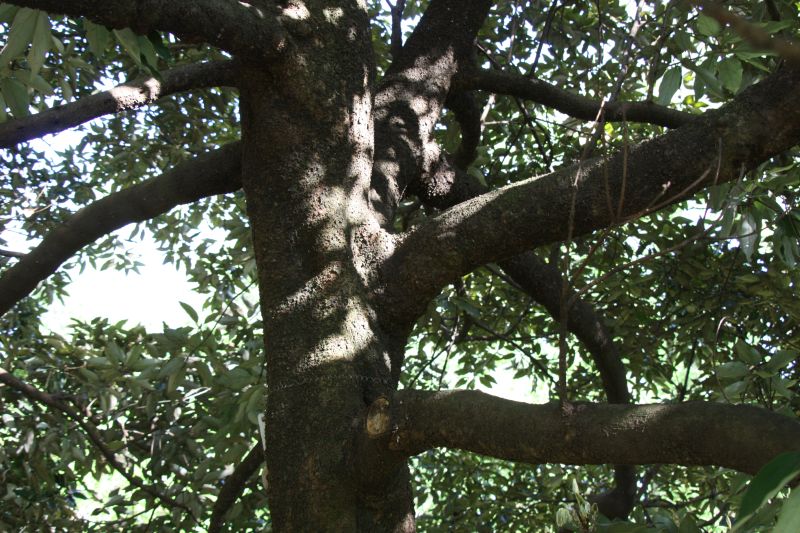 樹皮は緑色を帯びた暗褐色で、丸い小さな皮目がある。