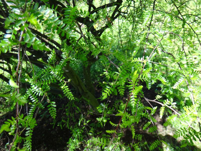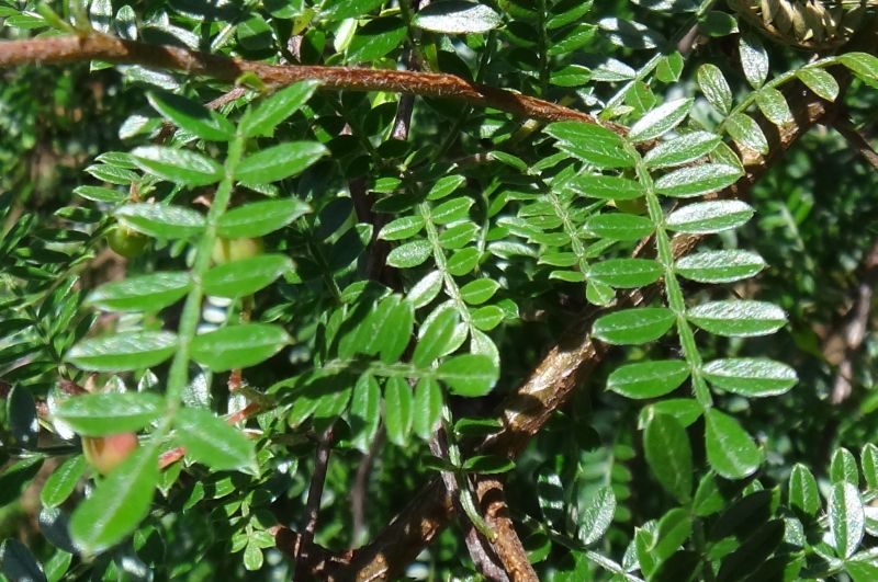 奇数羽状複葉が互生し、小葉は長さ2〜4センチの楕円形で、