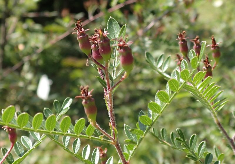 葉は奇数羽状複葉であり、小葉は先が短く尖った楕円形で、10対ぐらいある。