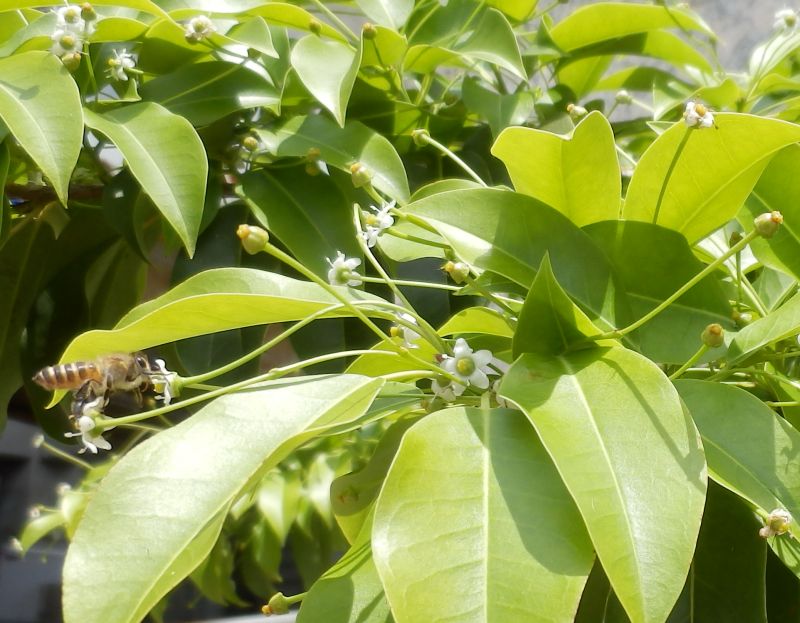 雄花は散形状に咲く。花は直径約4ミリで白く、