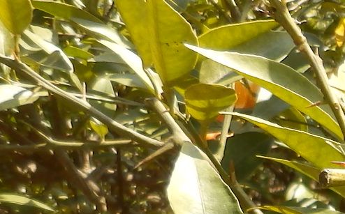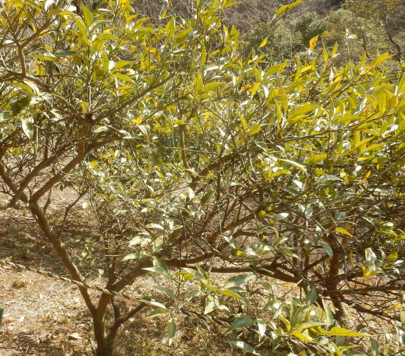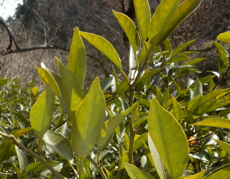 葉は楕円状披針形でつやがあり、葉柄には翼がある。