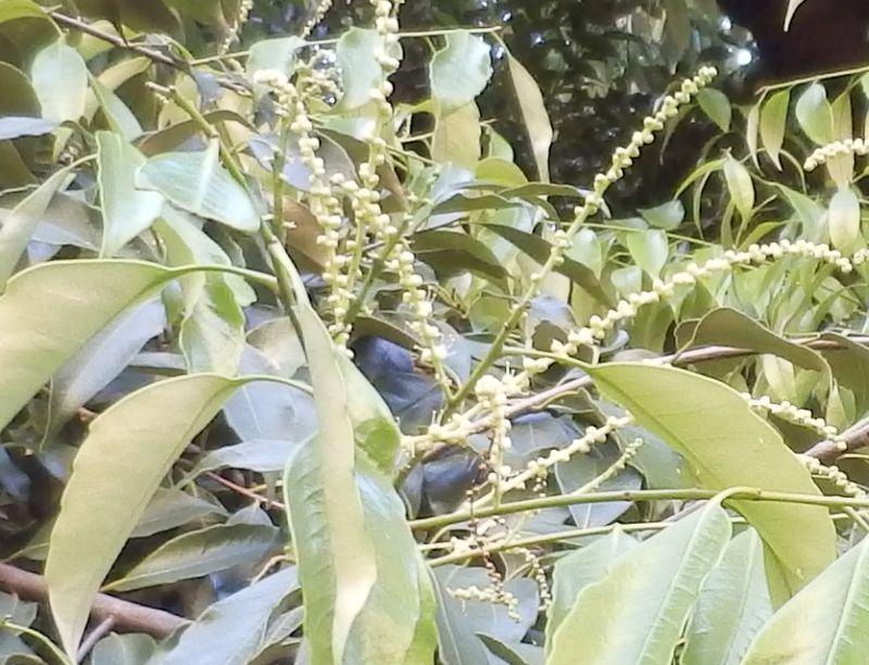 雌雄同株で、雄花序は新枝の葉腋から上にのびて弓なりに下垂し、