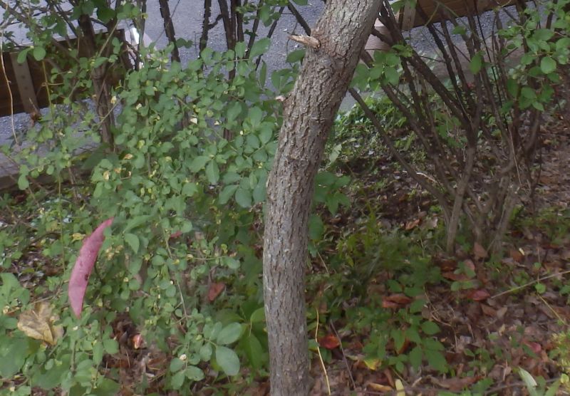 樹皮は灰褐色でひび割れる。(2015/10/22)。