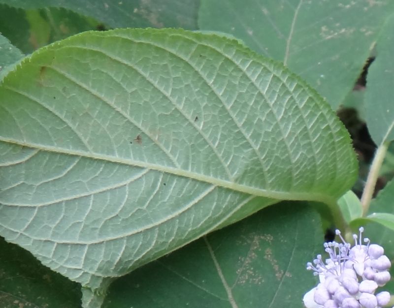 葉裏は淡緑色。葉の表裏に固い短毛があって、ざらつく。