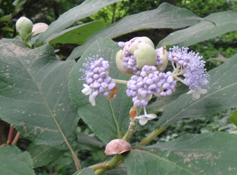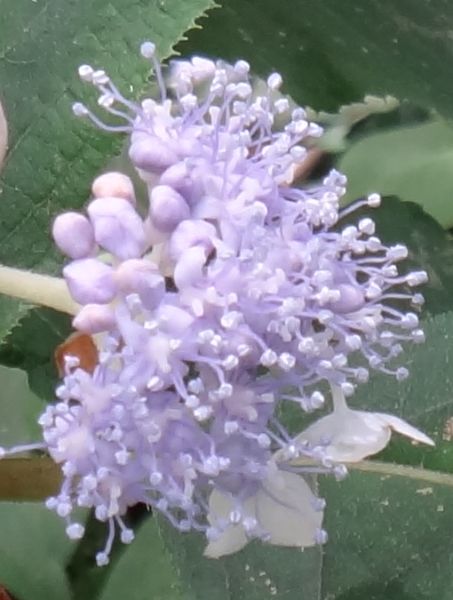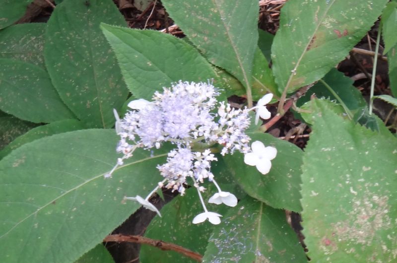 その各枝に淡紫色の多数の両性花が散房状に咲き、