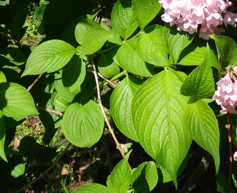 ハコネウツギ :花が白→紅紫色に変化、葉裏は無毛に近い。