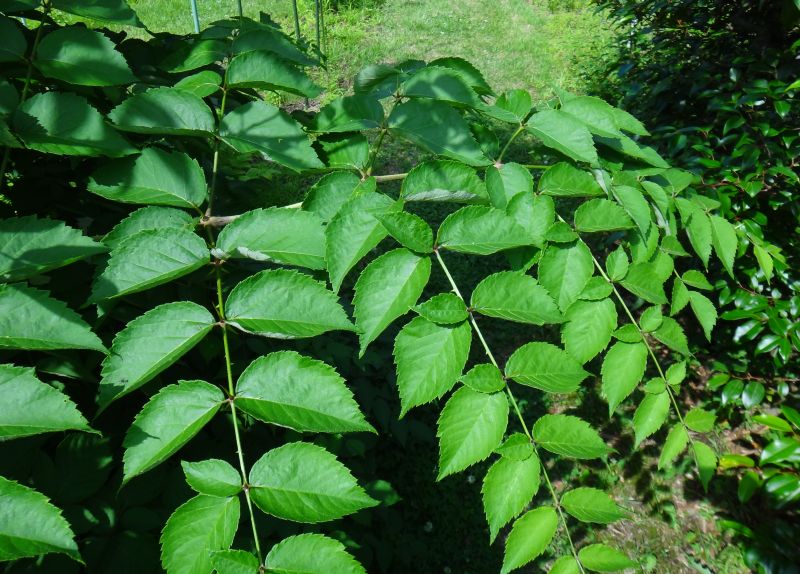 羽状複葉の羽片は5〜9個あり、各羽片に小葉が多数つく。