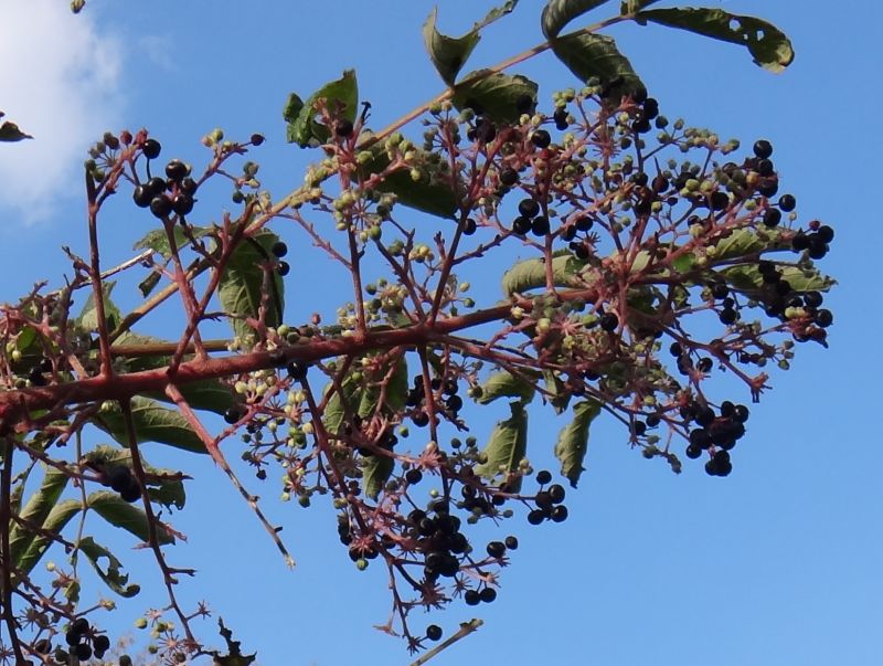 直径3ミリぐらいの球形の液果が9〜10月に黒く熟す。